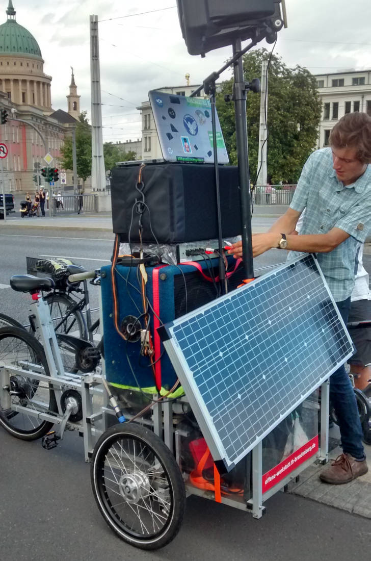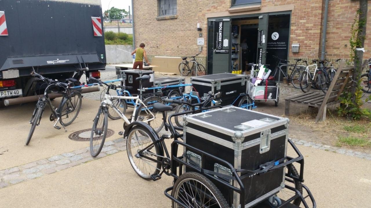 auf zwei Bühnen als auch mobil auf den Lastenrädern mit Technik versorgt haben. Sound, Licht, alles dabei - und alles mit dem Lastenrad transportiert!